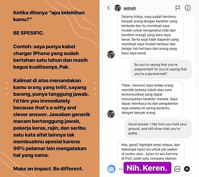 Kata Kata Promosi Diri Untuk Melamar Pekerjaan Hal from pbs.twimg.com Kalimat mempromosikan diri percuma punya banyak keahlian kalau nggak bisa 'jual diri' saat melamar pekerjaan~. Kalimat promosi ini bisa digunakan sebagai salah satu cara melamar di jobstreet agar cepat dipanggil lo! Kalimat melepas adalah jenis kalimat majemuk yang terdiri dari induk kalimat dan anak kalimat, dimana induk kalimat diletakkan di awal kalimat dalam penerapan dan penulisannya pada tulisan bahasa indonesia, kalimat melepas dan kalimat klimaks dapat dipasangkan dan dapat juga dipisah. Membuat dan mempromosikan diri ini terbilang gampang gampang susah, apalagi ada maksimal kata yang bisa kita inputkan sebanyak 300 karakter saja. Jika ada pertanyaan terkait 4 cara mempromosikan produk di atas, silakan tulis pertanyaan anda pada kotak komentar di bawah ini. Tulislah dengan bahasa yang baik dan benar bahasa yang baik dengan penggunaan tanda baca dan huruf kapital yang tepat, serta susunan kalimat yang sangat baik akan mencerminkan karakter dan tingkat intelektual kalian. Manfaatkan 300 karakter untuk mempromosikan diri anda sebaik mungkin sebelum mengirim lamaran kerja. Promosi diri akan menjadi kesan pertama yang akan dipertimbahkan oleh penerima kerja dan client.